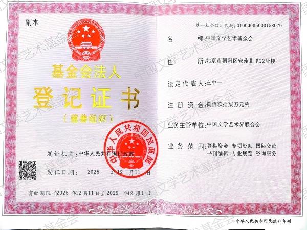 发起人:阳翰笙 中国文学艺术基金会成立于1994年,是由中国文学艺术界联合会主管,在国家民政部注册的社会团体,注册资本金897万元。以广泛争取海内外热爱和关心中华民族文化艺术的团体、企业和个人的支持与捐赠,根据国家文艺政策,资助精品文艺项目创作工程,培养优秀文艺人才;资助国内外文化艺术交流合作活动,扶持多元文化发展;致力于增进中国文学艺术界的国际交流,推动中国文化艺术"走出去";资助非物质文化遗产保护与传承,扶持老、少、边穷地区文学艺术事业;开展有益于社会,有益于人民生活的文化活动,促进中国文学艺术事业的繁荣与发展为宗旨。